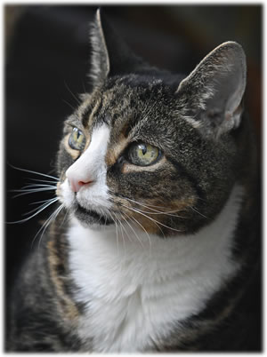 de schöne witte Katt Victoria, de flinke swart-witte Kater