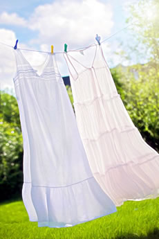 "Gottloff kümmt man wedder an de frische Luft", sän de Hemden, "vun't lange Liggen in't Schapp sünd wi all ganz geel worrn. Nu müssten wi noch eenmål bleekt warrn, dat hett man nu dorvun. Passt op glieks kümmt de gröne Kann mit dat Regenrohr un lett't op uns regen!" De Waschfru bröch de Geetkann ok wohrhaftig un begoot dormit de Wäschstücken, dee geel worrn weern. Dat Wåter un de leve Sünn schullen se wedder schöön witt måken.