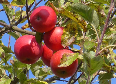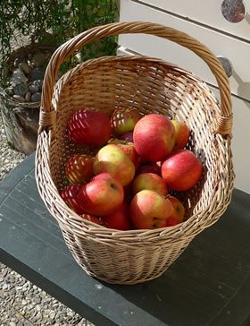 de Un ünnerdess fleegt all de Appeln mit de roden Backen in Schörten un Hannen. Un as se all in den Waschkorf liggt, seggt Tant Klara: "Ik dank ju ok schöön, Kinner, dat ji mi so flietig holpen hebbt! Un nu schüllt ji ok jeder en'n recht leckeren Appel nehmen!" Dor weer de Freud denn ok bannig groot.