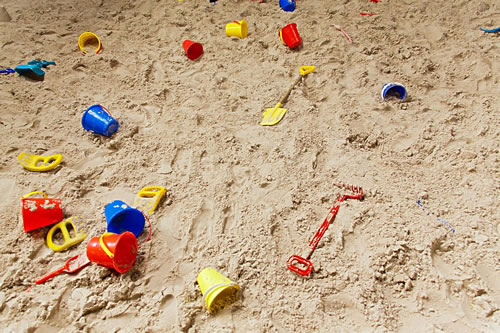Buten, vör de Stadt, merrn op den groten Platz ünner de olen Bööm, is en Sandhupen. Dor schippt un buddelt, solang de leve Sünn schienen dä, lüttje Jungs un Deerns mit rode Backen, as müssten se ehr Middagsbroot verdenen.