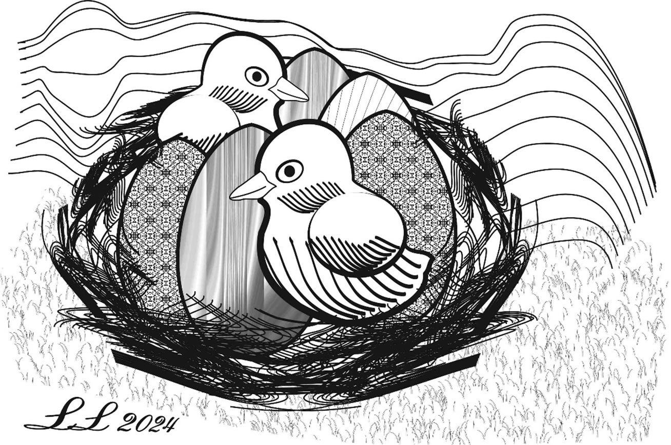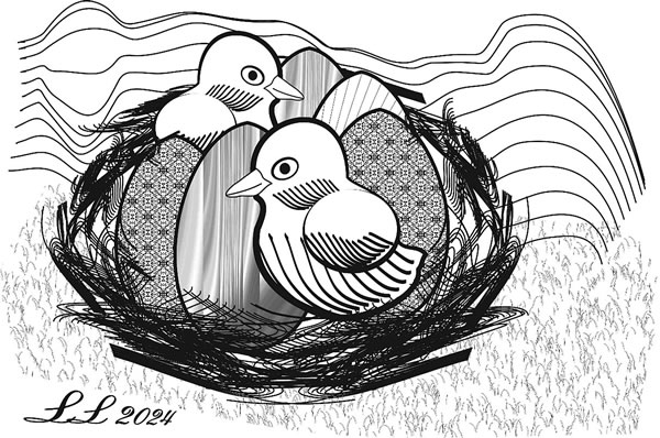 Van dei Kluckschke nöhm twei Eier dei Osterhaosen-Junior,