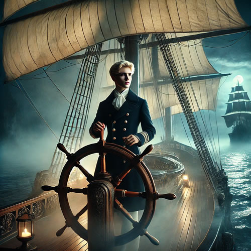 En lüttje Jungske mit lechte Haar liggt in dat Backje un lies jötert he. Tegen hum lagg en Stückje Papier. Daarup steiht: "Wi sacken off, de Jungske ik beed holl d'r an " keen Naam, keen anner Woord. So is't all utkomen, wat de dree Töverskes sük wünsken deen un well weet, womögelk word de lüttje Jung later ok en blond Kaptein mit sien egen Schipp. Mitunner, dat kummt blot hen un weer mal vör, denn