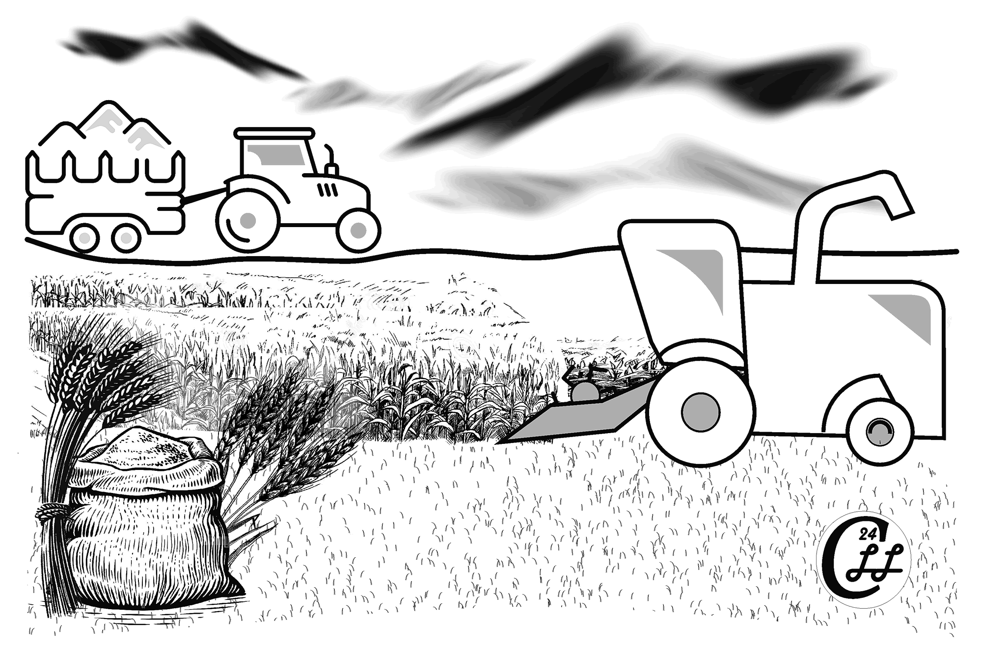 Stroh un Kaff süht man achter dei Maschine waihn.
