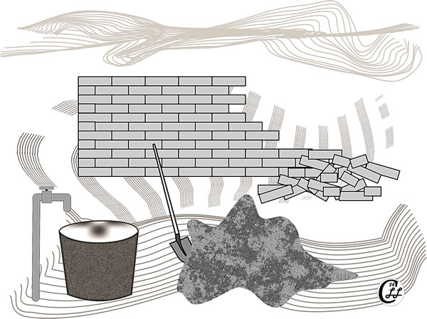 Dei Handlanger möök den Spies mit Waoter un Sand.