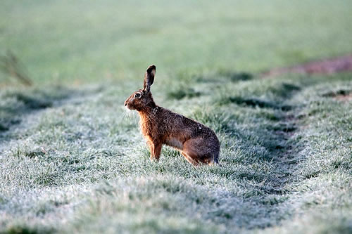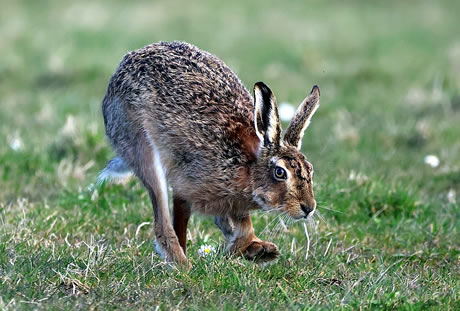 starr. Över dat Feld keem en Haas in ungliek Sätz, un över