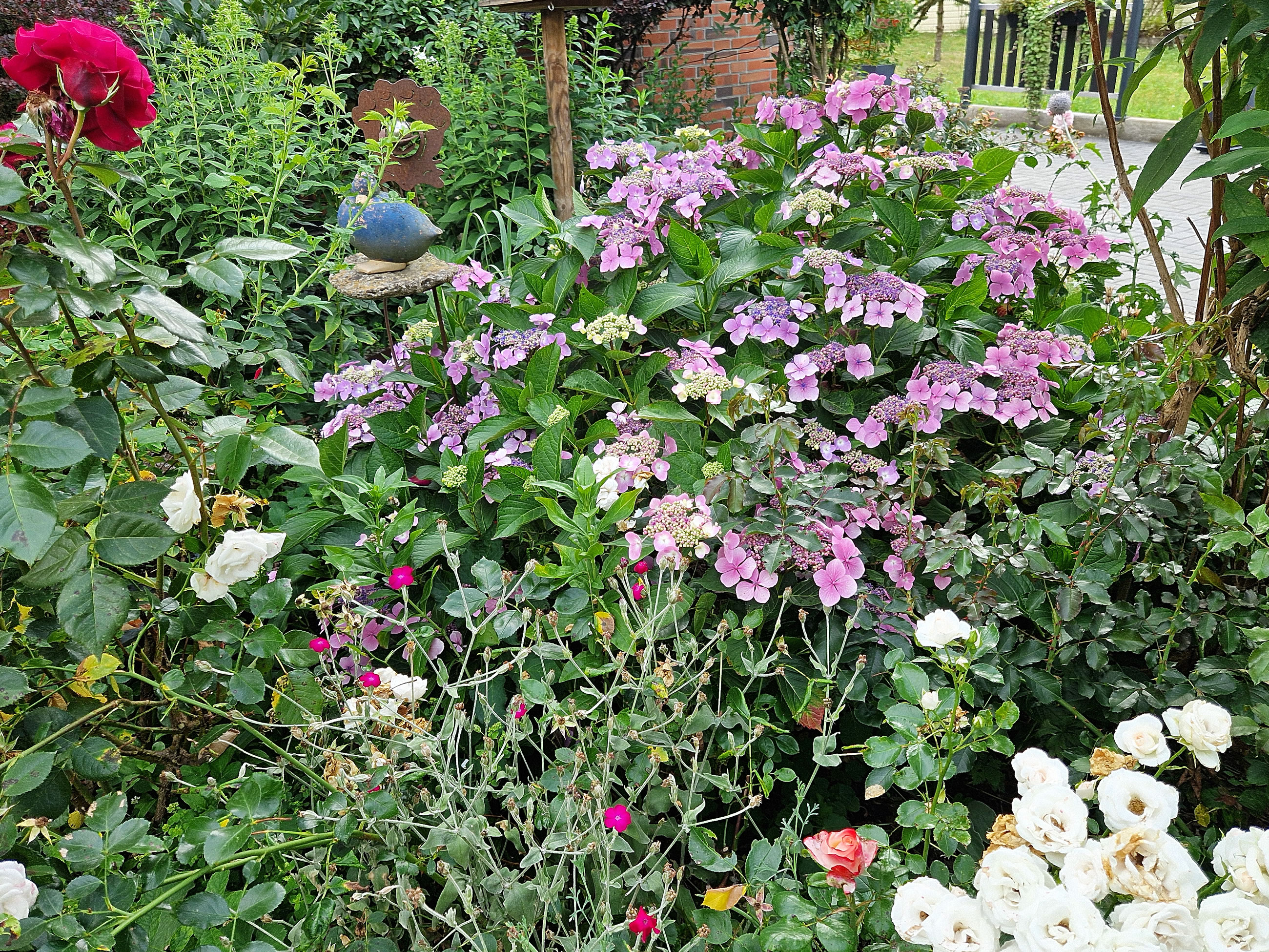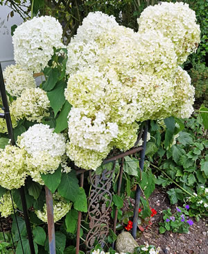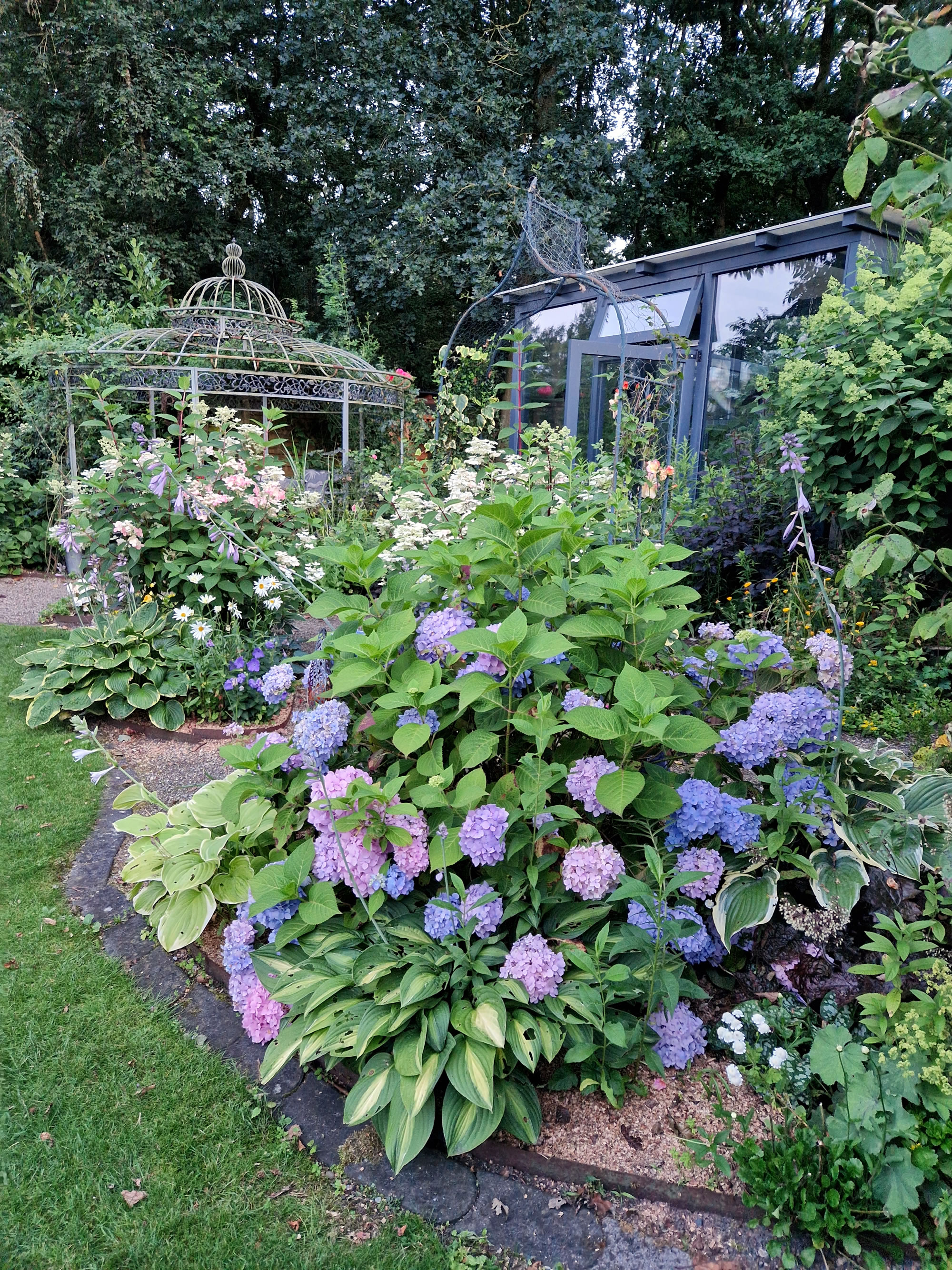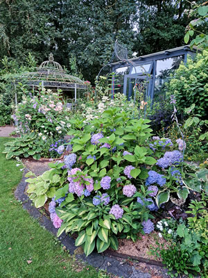 de Blötenpracht vun de Hortensien fallt een toeerst in't Oog.