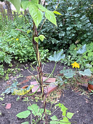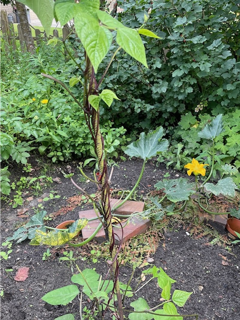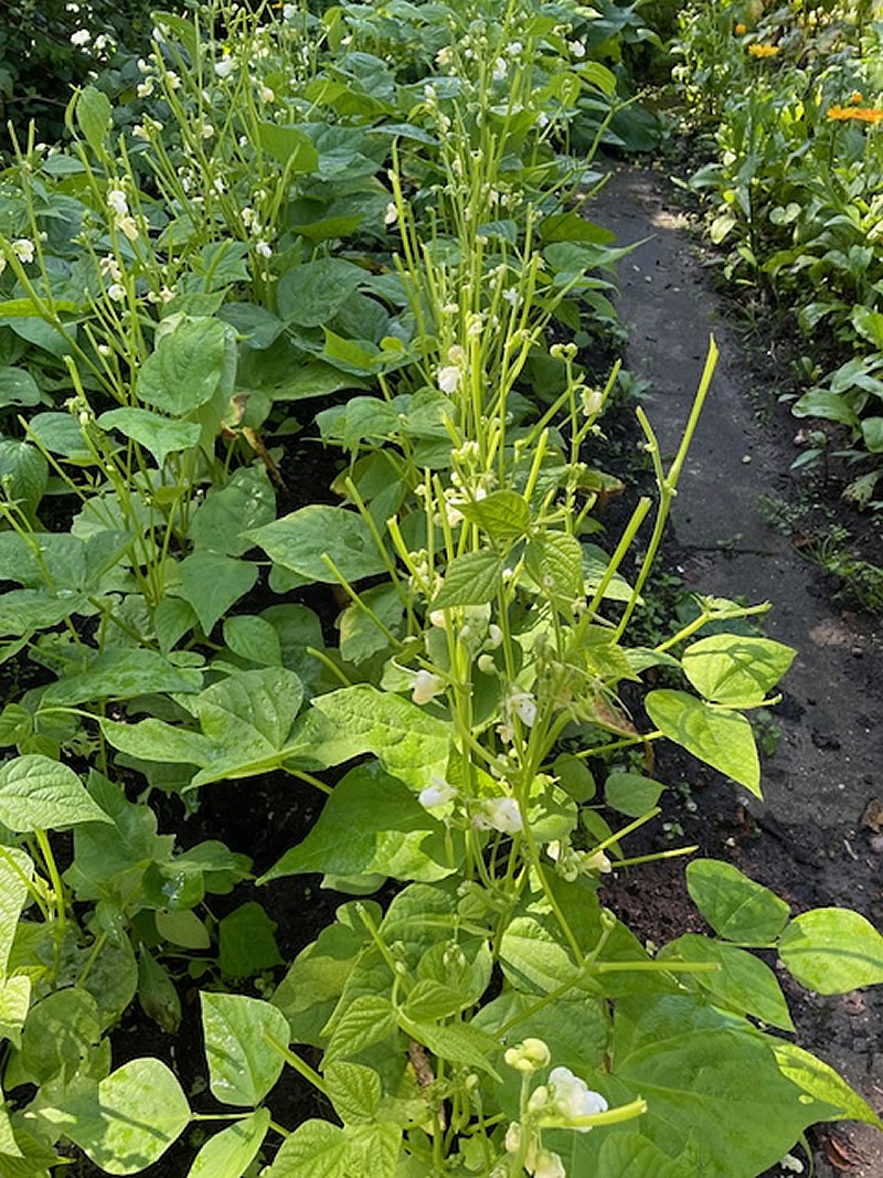 Un ehr dat wi na Bett gaht, luustert wi to dat Avendleed vun de Amseln, luuert op dat Opblöhen vun de Nachtkarsen, geneet de ehr Röök un amüseert uns över de Flattermüüs, de dör de Luft susen doot. Bün neeschierig, wat ik dit Johr woll Bohnen plücken kann. 5.7.2024