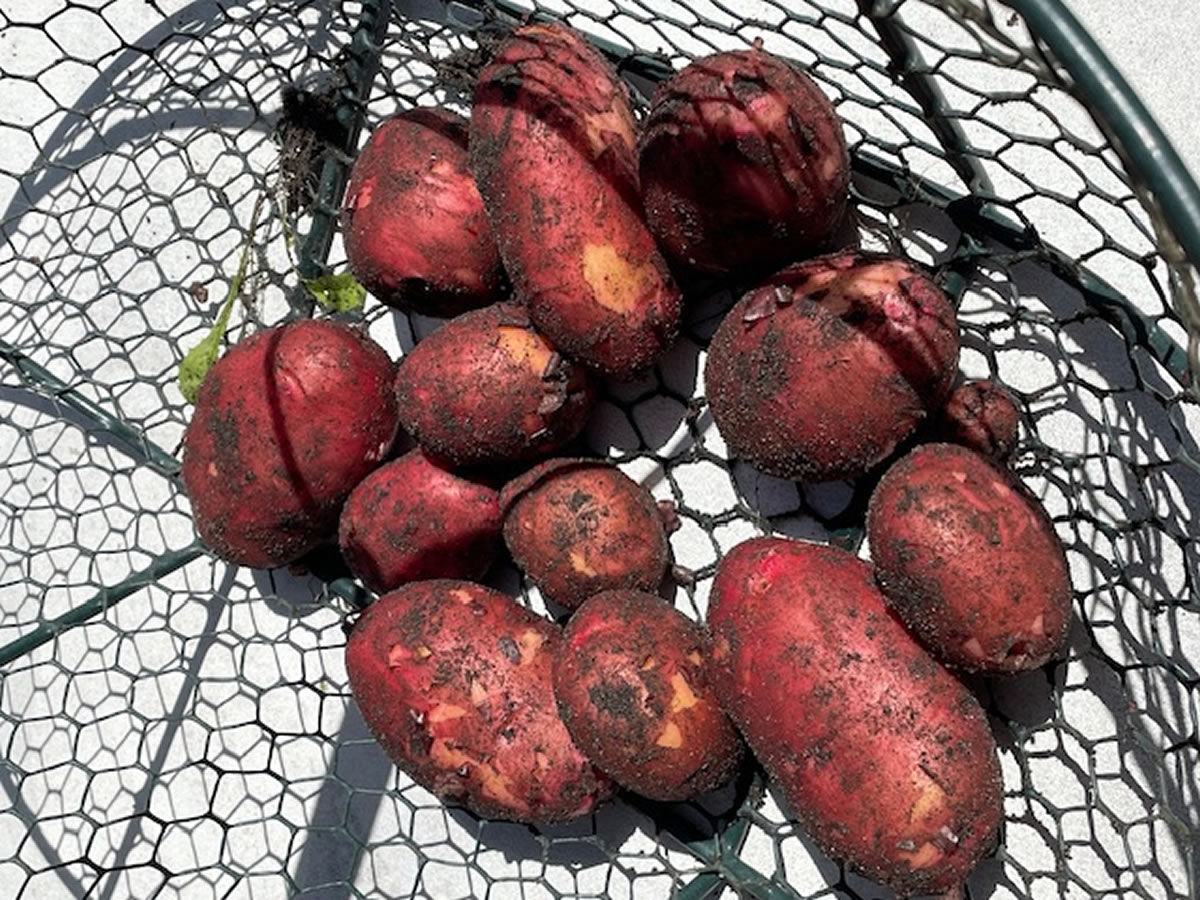 Nu hööp ik, dat nich noch en Wildswien sik över uns Kantüffeln hermaakt. Wenn dat ok faken regent, bewunnert wi aver de fröhe geile Blomenpracht dit Johr, laat uns de Kantüffeln smecken un sünd froh, dat wi vun uns Grööntüüch nich leven mööt.