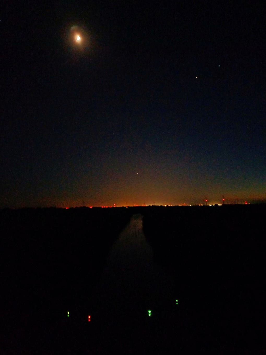 So harr ik den Maan noch nienich fotografeert. Heel snaaksch schien mi dat dat leet, as beweeg sik de Maan direkt vör mi noch na baven. Ok bi den hogen Zoom. Villicht en atmosphärisch Phänomen? Op jeden Fall is hüüt Nacht Niemaan. Dat weer dat letzte Maandlicht, wat ik knipst heff. De Biller köönt