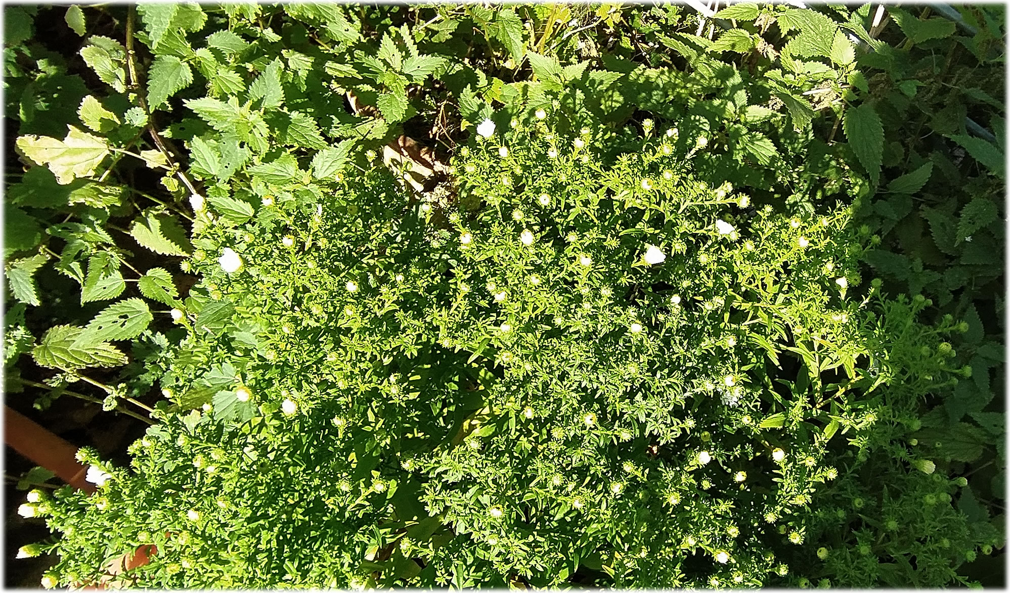 dat en sünnerlich effiziente Photosynthese De annern twee sünd wunnerschön witt blöhen Büsch, de ik avers nich mit ehr Naams kennen do. Ik wies se hier mal, villicht kennt een vun Se de Planten? De een maakt lustige spitze Toppen as Zippelmützen (hier links), de anner lütte buschige witte Blöden.