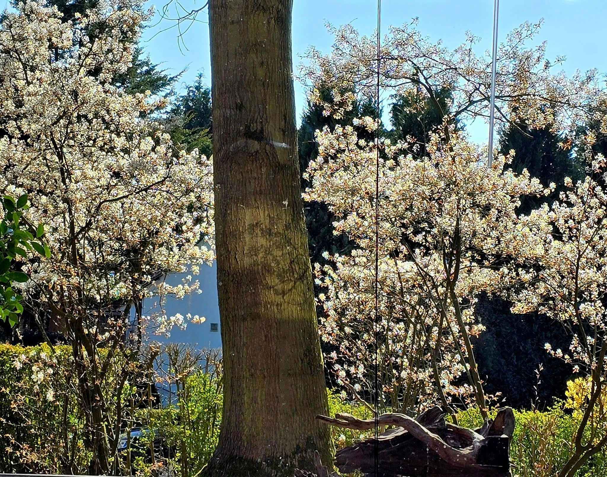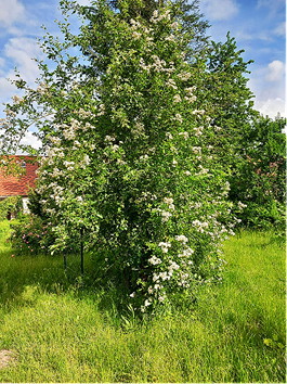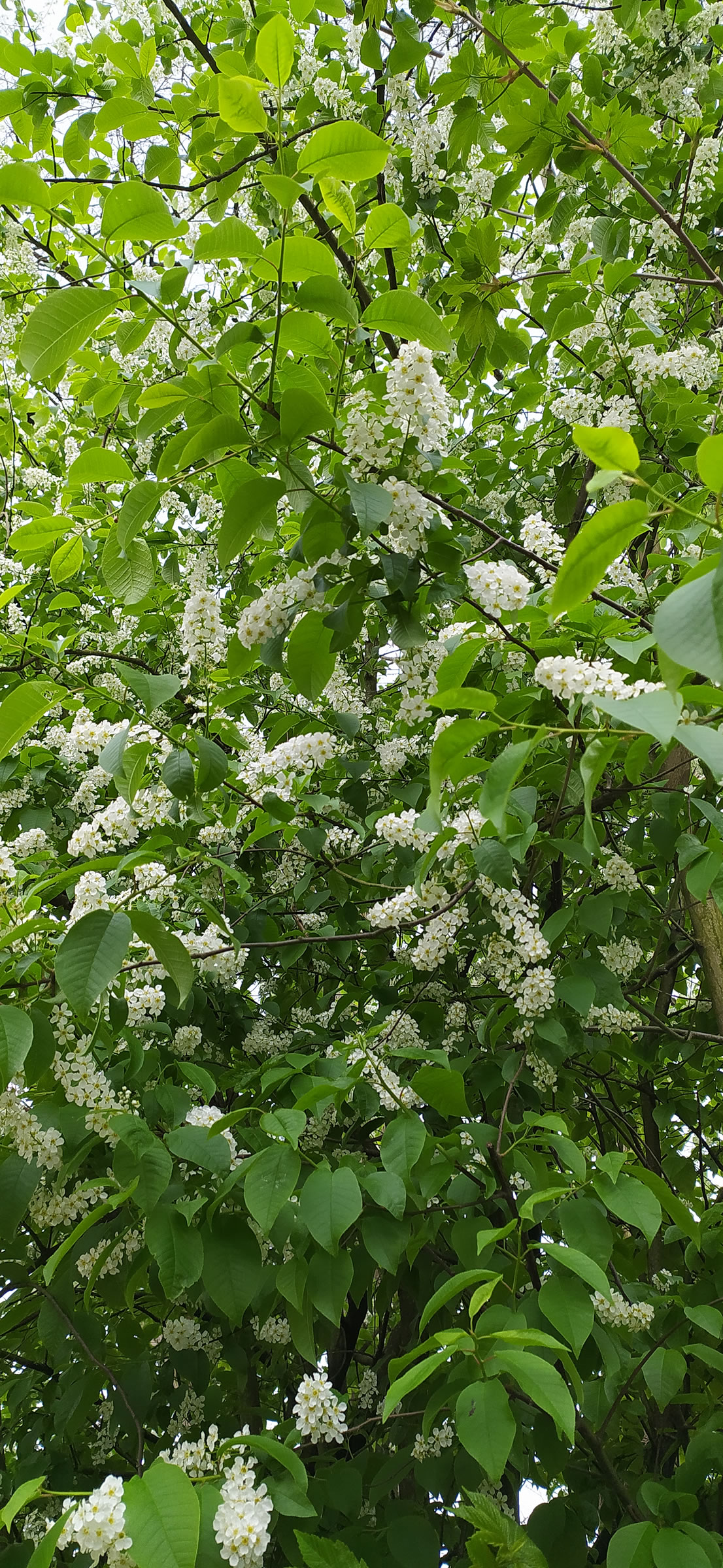 De Druvenkirsche blöht opstunns, dat dat Aart hett. Ehr Duft is so intensiv un stoffig-puderig, dat di dat reinweg den Aten versleit, wenn du ünner so'n Boom steihst. Meist as'n Rookbombe. Keen Wunner, dat de Insekten op den Struuk fleegt; sünnerlich Falter un Flegen sünd dor to sehn, se finnt dor Pollen un ok Nektar. Un in'n Harvst findt de Vagels dor Beeren, mit de se den Boomsamen wieder rümmersleept, För Minschen sünd de Samen avers swack giftig, de schullst also nienich eten. Wedder so'n Struuk, 'neem de Öllern oppassen mööt, dat se ehr Kinner vör wohrschuugt! Ik mutt nu weg, krigg keen Luft mehr vun den dicken Duft. Dat Bild köönt Se per Klick vergröttern! Marlou Lessing |