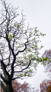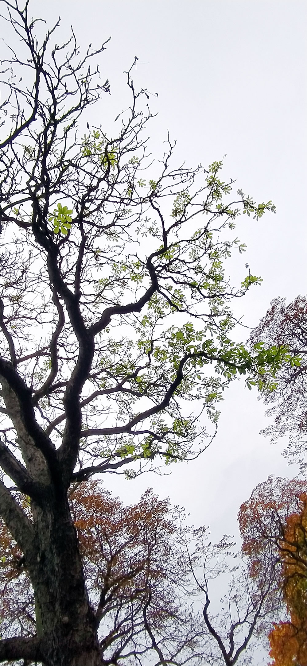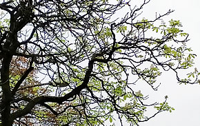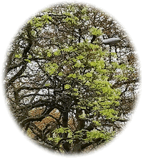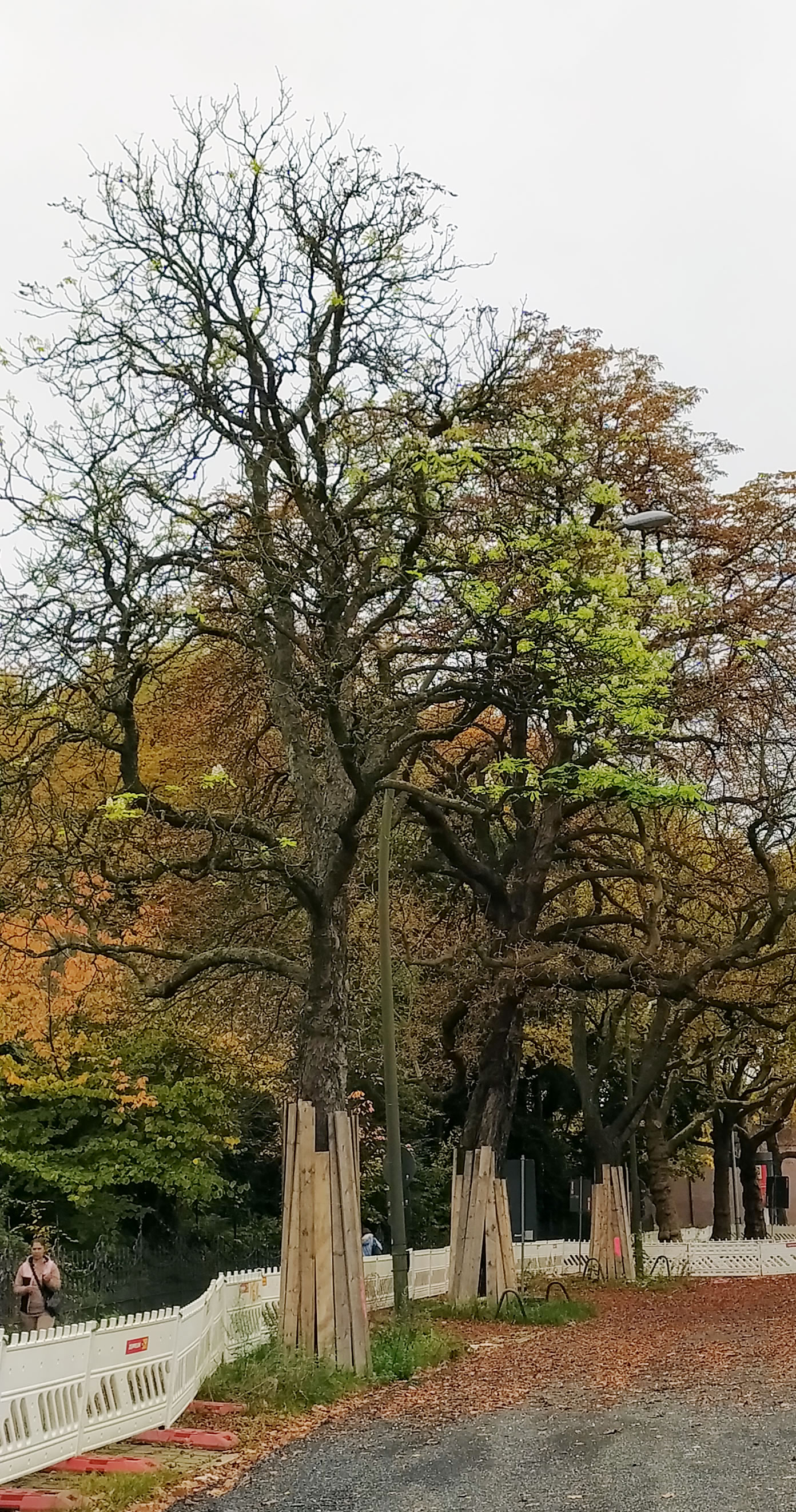 De Halfkrink leet nu blots noch as mit Aquarellstiften maalt. En beten erinnert dat Weder an den April, bloots nich so mild. Ok dat Loof in de Bööm hier wöör to den Lent passen. Aver dat is bloots en Momentopnahm töövst een Momang, denn sühst en Blatt dalfalln un weetst, dat Harvst is. Dat Bild köönt Se per Klick vergröttern! Meike Balzer-Fraun |