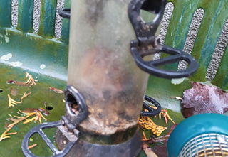 Ik heff ehr utschüddt ut den Deckel baven, un se is foorts wegsluppt. De Vagelröhr mutt ik reinlich maken un höger hangen. De Muus is op mien Terrass willkamen, avers se schall vun dat leven, wat de Vagels rünnerfalln laat. De Biller köönt Se per Klick vergröttern! Marlou Lessing |