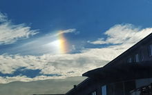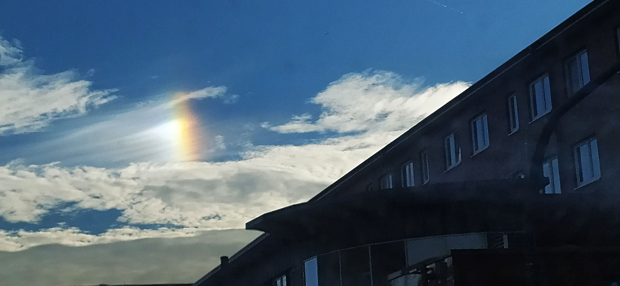 so Eerst nu heff ik sehn, wat dor allens to sehn weer: de kumplette 22-Grad-Halo mit bavern Berührungsbagen un bavenöver noch wat (Bild links in'n roden Krink) is dat de Zirkumzenitalbagen orr etwa de rore, extrem rore 46-Grad-Halo? Ik harr dat al an'n Himmel schemern sehn un heff dat Handy eenfach hoochhollen... Sowat Schööns un Besünners faat mi so an, dat mi nu noch de Tranen kaamt. De Biller köönt Se per Klick
