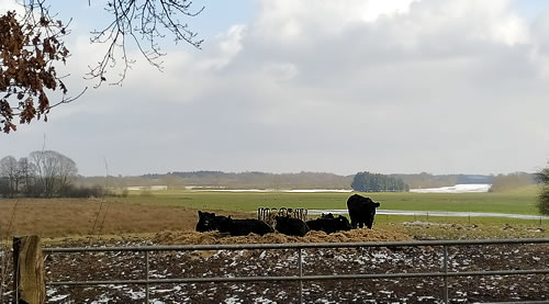 Düsse söten Deerten heff ik hüüt blangen de Straat sehn junge Robustrinder, de dat hele Johr buten sünd. Ik heff glieksen en Riemel op ehr maakt. Is Februar de Küll is aasig, Dat Bild köönt Se per Klick vergröttern! Marlou Lessing |