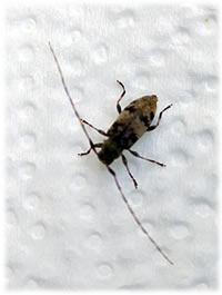 Dor, woneem de Holtweg sik langsam in'n Woold verleert, leevt en lüttje swattblaage Gesell: de Wooldmistkäver. Woso krabbelt he op den Weg rümmer? Wieder vörn liggt en Aartgenoss vun em, tweipeddt un dood! Woso geiht he nich in't Gebüsch?