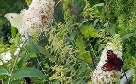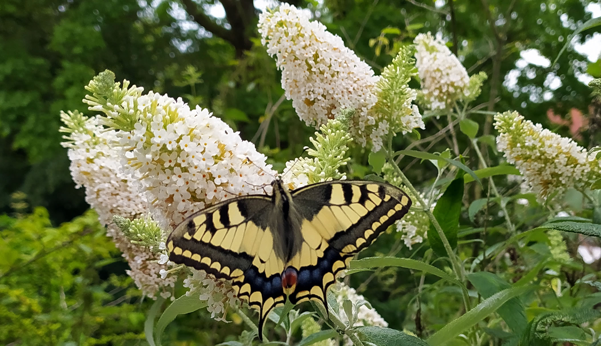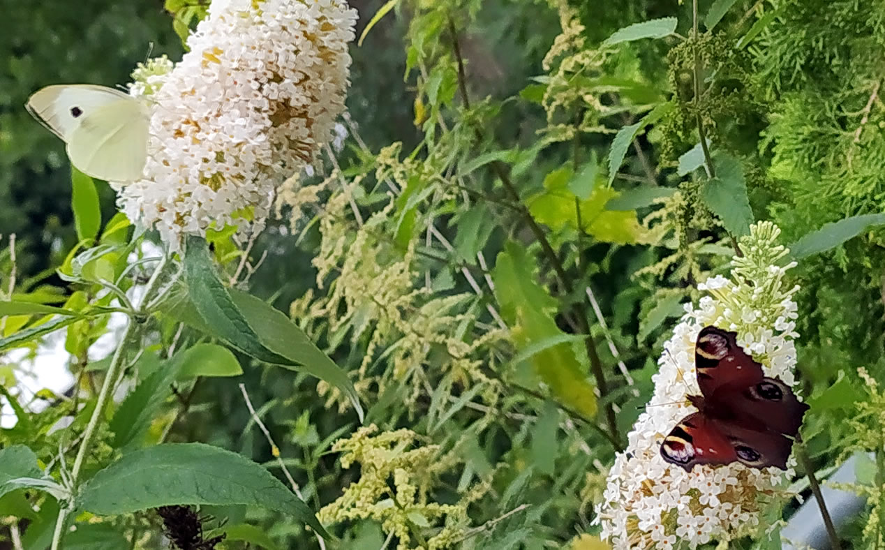 Lü, wenn ji en Goorn orr Balkon hebbt, leggt sik en Sommerfleder to! De diegt ok in grote Kübel. Un ehrn tweten Naam "Schmetterlingsflieder" driggt de Plant to Recht: Sogor in de Grootstadt sammelt sik dor Bottervagels, dat dat to'n Wunnerwarken is. An mien Struuk sitt se to Dutzen, tomehrst sünd dat Dagpagelunenoogen, ok Kohlwittlinge wiest sik un suugt freedlich tohoop mit de annern.
