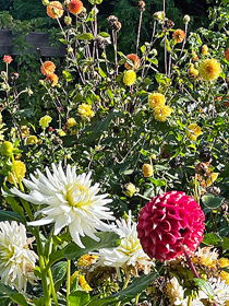 Wat weern dat för feine Sünnendaag annerletzt! Ollwieversommer vun't Fienste. Tiet förn Goorn un ton Sinneren inn Liggstohl un ann Schrievdisch. En letzte Gröten schickt de Sommer mit de smucke Swatte Königskars in mienen Goorn. Se is swack giftig, blöht mehrmalen, vun Juni bet August, avers in düssen warmen September hett se sik noch verlocken laten. Düsse Blööd is sachs ehr letzte düt Johr. Se is en gode Immenweid, avers ehr Insektenfrünnen sünd nu ok weg. Dat Bild köönt Se per Klick