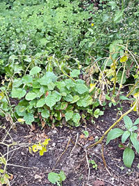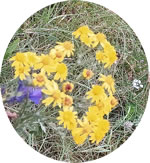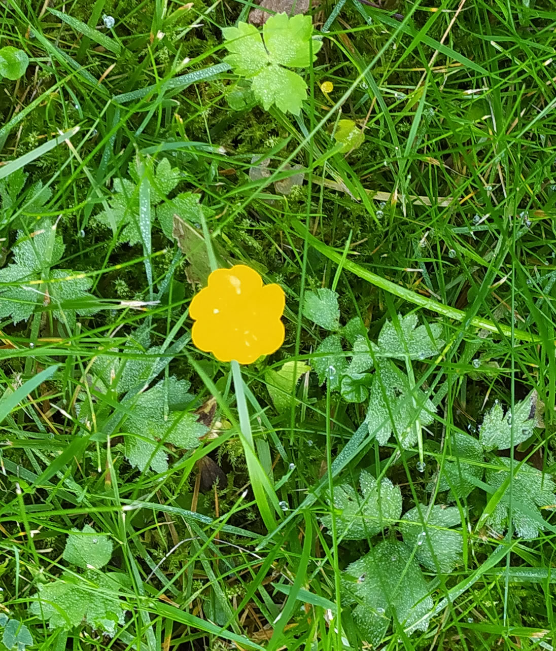 Na sien Blatt is dat en Ranunculus parviflora, de "lüttblödige Hahnenfoot", avers na sien Blööt ehrder Ranunculus repens, de "krupen Hahnenfoot". Kann een dat opklaarn? Op wat gaht wi dor spazeern? De Biller köönt