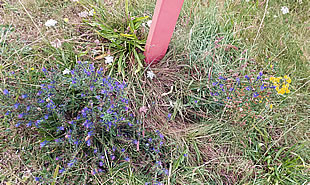lütte ukraine- Wat hebbt sik de dree dorbi dacht? Un woso utrekent an den Pahl? Ranken köönt se all nich. Planten, dücht mi, hebbt faken ehrn egen Kopp! Se sünd nich to faten, meist as Minschenpersönlichkeiten. Nadraag: Nu hebbt anner Maten Schafgarbe un Spitzwegerich op de Biller erkannt — schoonst se doch recht unscharp sünd. Danke! De Biller köönt