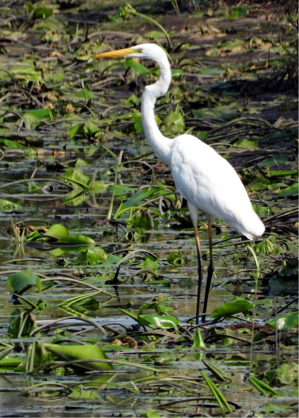 Sülverreiher vun Thomas Seemann Se köönt de Fotos per Klick vergröttern. Trüch kaamt Se denn mit den Zurück-Knoop op de Browser-Symboolliest. Meist is dat al wedder Harst, ok wenn de Warms noch över wegtüüscht. Ehrgüstern fohr ik över't Dörp. Achtern rut gifft dat en künstlich anleggten Kanaal för'n Waterafloop, 'neem ok de Angelvereen wat pacht hett. Ok ik fang dor mal den een orr annern Fisch ganz regelgerecht, mit Angelschien un allens.