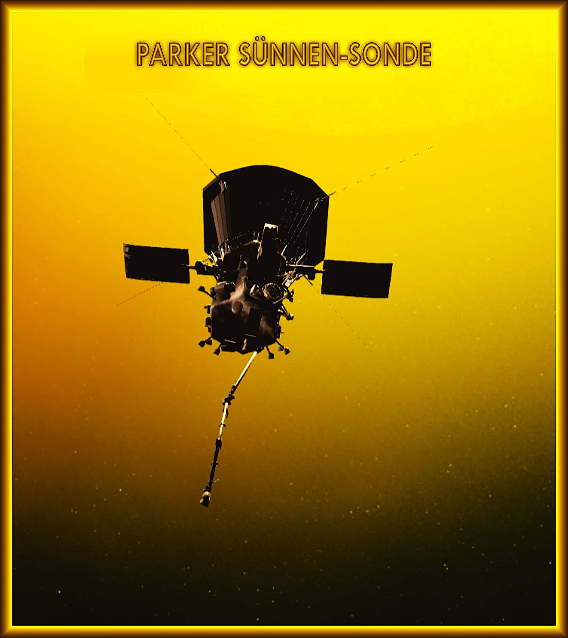 Dit Konzeptbild wiest dei Parker Sünnen-Sonde kort vör den Intritt in dei Sünnen-Korona baoben, rechte Hand, is dei Sonde. "Wi verstaoht nu den Sünnen-Wind un den drocken Anloop