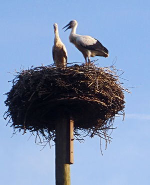 Johren is dat nu her, dat ok bi uns in't Dörp en Kavelmast mit en Nisthülp opstellt worr, op dat sik meist jedet Joohr en Storkenpaar daallett, dor Eier leggt un lütte Störk utbröödt, se opteht un sik naher wedder op de Reis na Afrika maakt.