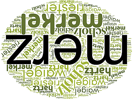 Un nu bün ik dor ankåmen, mi 'n Kopp tau måken, wat wull "merzen" bedüden künn. Denn dat is aftosehn, dat so'n Verb sik bald wiesen warrt. Wat hemm wi doch för'n Glück mit dei Nååms von uns Kanzlers un Kanzlerschen! Brandt, Schmidt, Kohl, Schröder, Merkel, Scholz, Merz: Dei Nååms sünd kort un gaut tau Verben tau verarbeiten. Nich uttaudenken, wenn'n Minsch as Leutheusser-Schnarrenberger in't Kanzleramt lannen wöör! Dor lett sik bi'n besten Willn kein Verb nich von måken. Oewer "Merz" is wedder so'n Steilvörlåch, dei Ball licht up'n Ölbenmeterpunkt, un wi schulln em nütten. Bitau wöör Merz wedder Komplexe kriegen, wenn Scholz un Merkel ein Verb kriegen, hei oewer nich. Dor warrt hei ganz depressiv von, uns' arme Fiete! Dat koenen wi nich riskiern! Also, wat kann, wat warrt opneechst "merzen" heiten? Låt uns spikeliern! Up ein Siet hett Fiete Merz ja dei Wählers düchtig achter't Licht föhrt. Mit Hülp vonne Gräunen ut'e Midd gellt up eins dat Verspräken nich mihr, dei Schullenbrems nich antaurögen; dei Brandmuer nå rechts un links wull un will hei nich inrieten, doch sien Gesetzesvörlåch, den Taustrom von Frömde in Grenzen tau hollen, bringt hei blot mit Stimmen von rechts un sien Kanzlerwåhl in tweiten Dörchgang mit Hülp vonne Linken dörch. Un hei dröömt villicht nich von'n grötter Düüschland, wer von'n Grot-Europa, wo dat in'n Osten noch Europa-Rebeits as dei Ukrain, Moldau un in'n Kaukasus gifft.