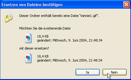 wüllt, ünner den al en Datei in densülvigen Ordner liggen deit. Denn kriggt Se en Mellung as in dat lütte Bild.