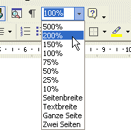 Utspraken "Suhm". Dat Woort ut de Fototechnik bedüüd so veel as "Vergrötterungsfaktor", un dat heet dat ok in'n Computerberiek. In mennig Programme köönt Se sik dat Dokment orr en Utsnitt dorvun vergröttert wiesen laten. So kannst enkelte Details beter bekieken. De Zoom-Funkschoom is mehrst op de Symboolliest vun Programme to finnen, un wenn nich, denn stekt se in't Menü Ansicht. Dat Bild rechterhand wiest de Zoomfunkschoon in Microsoft Word.