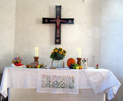 De Kantüffel sünd rut. De Kürbis, dat Korn is in de Schüün. Allens is in dit Johr, so meen ik, goot rinkamen. Nu is Oorndank. Wokeen hüüt morgen to'n Gottesdeenst geiht, de süht up den Altar Blomen un Appeln un den Oornkranz ut Korn bunnen. Ik heff in Slutup ok al mal Fisch up'n Altar sehn.