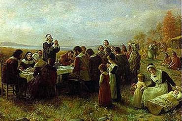 De Pilgervadders orr Pilgrim Fathers, Inwannerer in't 17. Johrhunnert, dankten Gott för de niege Heimaat un Eten un Drinken, för Leven up en Flack Ierd. Ehr Nakamen sünd hüüt in de USA un Canada so vele, dat se bi Thanksgiving un Danken un Laven schon den Toon angeevt. Dor ward nüms Präsident, de nich Gott för de Oorn danken deit. De Pilgervadders weern besünnre Christen. In Englang wöörn se jagt. 1620 seilten se mit de "Mayflower" in de Niege Welt un buuten sik un ehr Nakamen mit Hülp vun Indianer ehr "Riek" up. As Bruuk steiht bi Wikipedia: "Zum traditionellen Thanksgiving-Essen gibt es Gerichte, die es schon beim ersten Thanksgiving-Fest gegeben haben soll: einen gebratenen und gefüllten Truthahn (Roasted Turkey) mit einer reichhaltigen Auswahl an Beilagen."