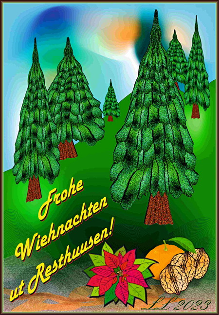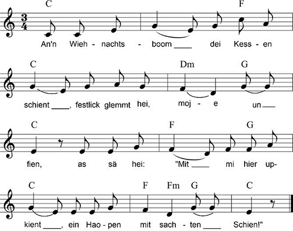 An’n Wiehnachtsboom dei Kessen schient, Dei Kinner staoht mit lechte Oogen, |