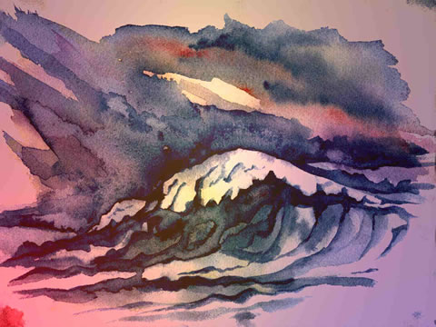 Dei Wellen, huushoch getörmt.