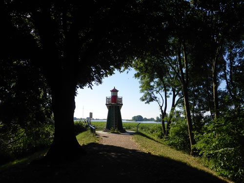 An de Südoostspitz vun de Elvinsel Wilhelmsborg, in den Hamborger