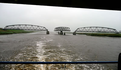 Mit luut Klingeln weck mi de Wecker. Gau sprung ik ut Bett un leep an't Finster. Dat weer noch gor nich richtig hell. Aver de Regendruppen an de Finsterschiev weern nich to översehn. Dat hölp nu allens nix, ik müss los! Villicht änner sik dat Weder noch up de Busfohrt bit Tönning. Klock 10 sull de "Adler Princess II" vun de Eiderkaje in Tönning afleggen. Ümmer wedder güng mien Blick wiel de Busfohrt ut Finster. Aver de Regen prassel so dull gegen de Schieven, kuum dat de Wischer för den Busfohrer enen kloren Utblick beschick! Wat en Glück, dat ik enen Scheerm dorbi harr. In Tönning leet de Regen wat na. Wi kemen dröög an Bord. De Motor vun de "Adler Princess" leep al, un as wi all an Bord weern, leggte de "Adler Princess" to uns Eiderfohrt af. De Sicht weer nich allto goot. Rechts un links an't Över weer griesen Slick; Watt, as dat an de Noordsee heet. Vör uns leeg de eerst Brüüch över de Eider. De harr ehr Klappen al för uns upmaakt.