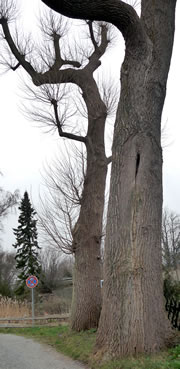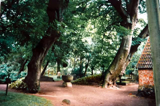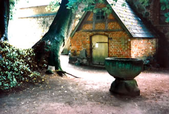 an de Poort. Ik glöv, wi Kinners nömt se Piff un Paff. In Sömmer hangen Tacken mit rode Appelde over de Mür, vun de harrn we Kinners gern prövt. En paar hel modige Jungs waagde dat un klauterde in Schuul van Dunkern over de Mür. Daarna vertellen se stolt daarover, denn de Appelde stammde ja ut de Paradies! As de Tun noch hegt un propper war, stun en Dag de Poort open un