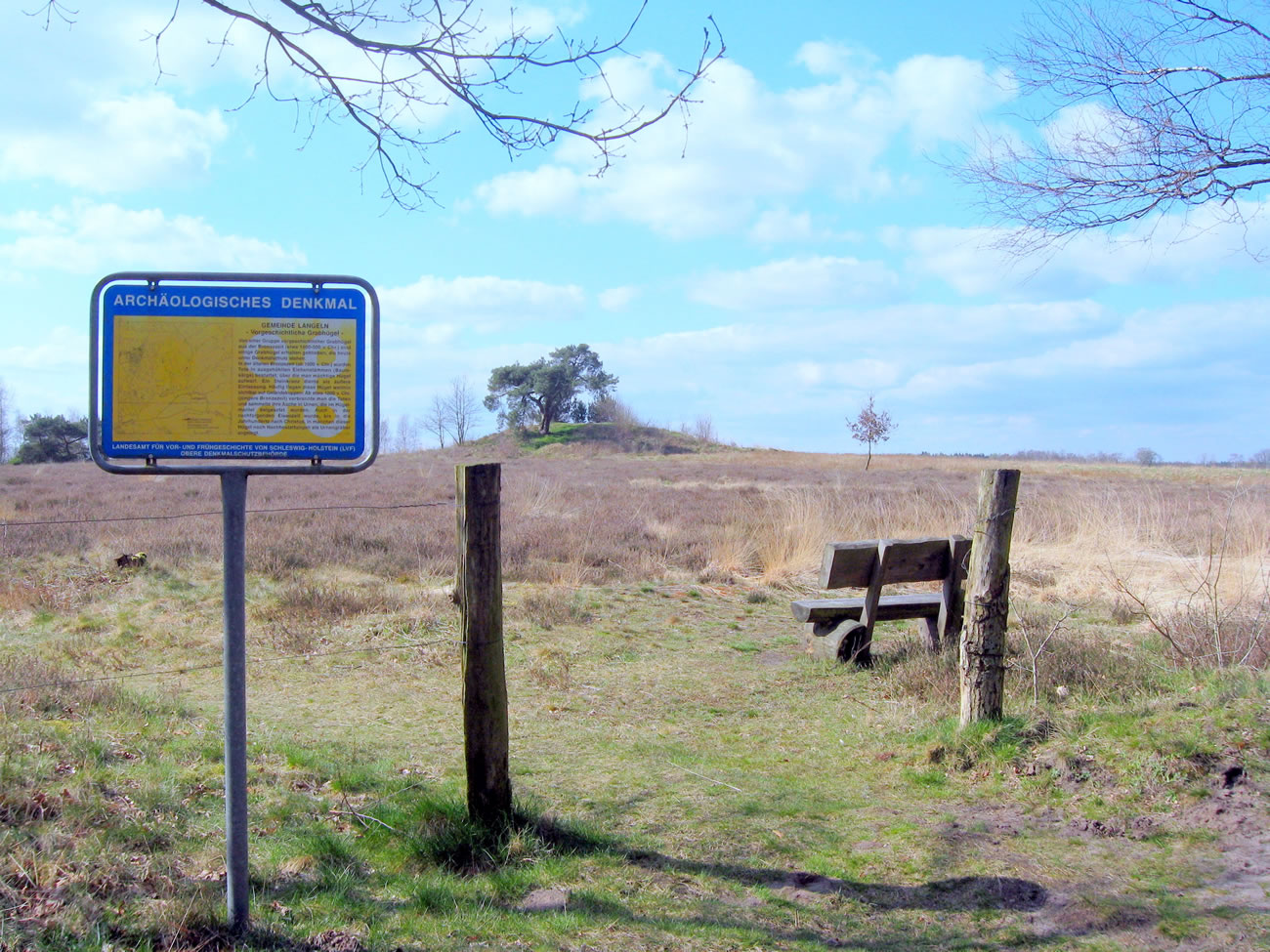 Wer in Langeln na't Vossmoor rutföhrt, warrt kort achter de Krückaubrüüch een selten schöön Hünengraff gewohr. Merrn in een ool Heidstück liggt hier linkerhand een "Archäologisch Denkmal", as dat up de amtlich Tofel an de Straat heet. Vör 3000 Johren in de Bronzetiet hebbt hier de Lüüd ehr Doden in Urnen bisett. Een smallen Footweg dörch de vun Barkenbüsch friemaakt Heid bringt di up den Graffhügel, wo een knorrig Föhr ranwussen is. Vun hier baven hesst du een wieden Rundblick över dat ümliggen Ploogland un de grönen Veehweiden; na't Dörp to versparrt een Dannenholt de Sicht.