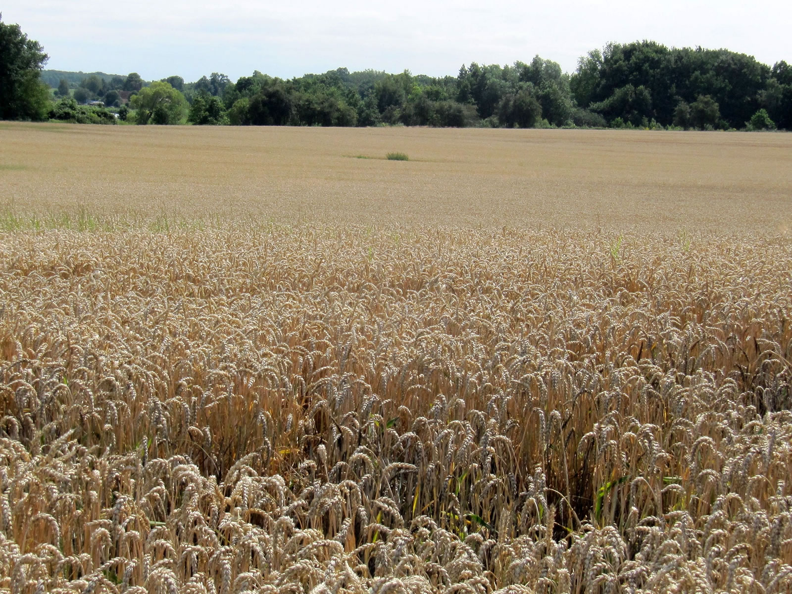 Eerdbeerbeeten, as Olga mi anstött: Ik glööv, wi hefft noch'n beten daröver snackt, dat nich allens beter is, blots wieldat dat grötter is. Uns Walderdberen weren hüüt wedder 'n beten drög