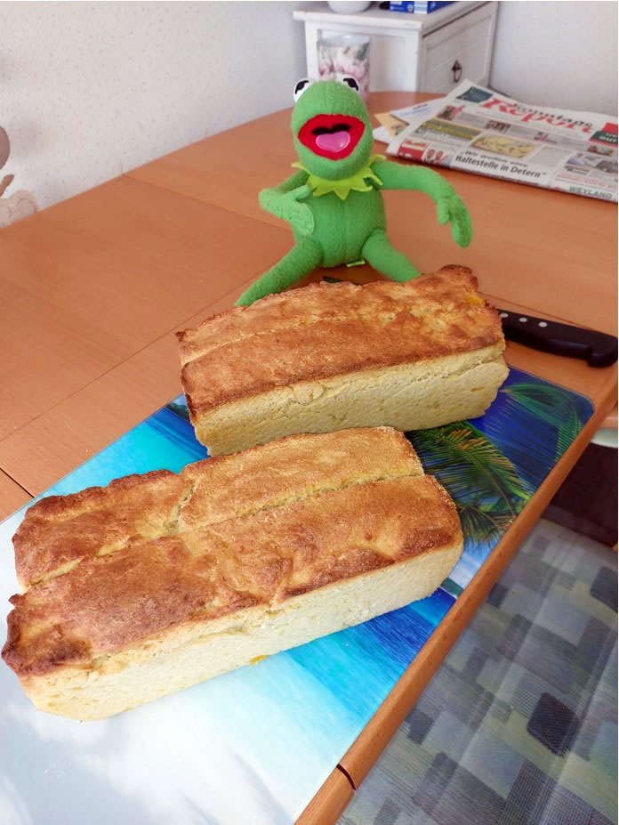 Un wat do ik nu mit all den Körbs? Dorför heff ik dat Rezept för düsse superleckeren Körbsbrote arvt. Dat hett villicht ok Opa Theo mit sienen Körbs maakt ok wenn he keen Ünnerstütten vun Kermit den Pogg harr: Körbsbrot (langt för 2 Stück): 750 g Körbsmasse