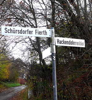 Dörch den Wegwieser mit den Naam "Schürsdörper
