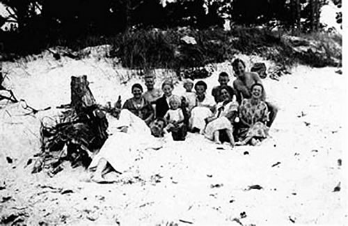 Buur Hans Friedrichs mit Süster Rieke sitten vörn und Brauder Carl un de Mudder achtern. Dat Foto hett unsen "Utflug" vun Oost na West verbuhlt överstahn. Dat stammt ut de Tiet vun'n 1.Orlog. Beid Friedrichs-Jungs sünd up Fronturlaub.