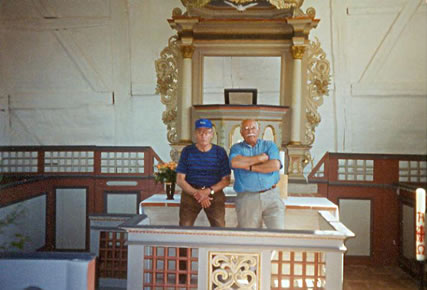Föfftig Johr läter: Kurt (links, al dood) un Günter Weber (rechts) na de Wenn in de schön renovierte lütte Kark in Klempenow vör den Altar.