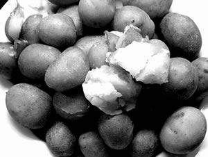 Planten "amerikaansch besorgt". Dat is en Soort, de grote Tüffel bringt. Över "Ackersegen" steiht schreven: "Ackersegen, ein Klassiker unter den Knollen! 1929 entstanden aus den beiden Sorten "Hindenburg" und "Allerfrüheste Gelbe". Bis in die 60er Jahre war die Kartoffel weit verbreitet, ertragreich, starker, würziger Geschmack, Blüte weiß, reichblühend, Reife sehr spät, sollte gut ausgereift sein, gut zu lagern, schorffest, krebsfest. Schale ocker, schwach genetzt, Augen ziemlich flach, Knollengröße mittelgroß bis groß, Kochtyp eher mehligkochend, Form rundoval." Uns Opa verstünn wat nun Tüffel. Hei harr all in Pommern