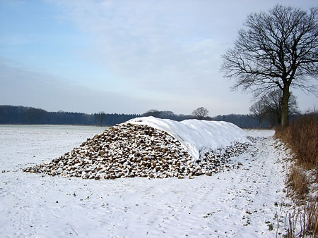 De Tüffelmiet werr noch nich ganz mit Ierd tauschmeten, dat de Tüffeln na båven noch wat dampen kunnen. Dat harr mien Grootvader ehr seggt. In de Düsternis güng Oma hen na Tüffelmiet, ik flink na. An beide Sieden weer de Tüffelmiet schön fast un hart inpackt. Ik mit den Korf op de Miet, un Tüffel boven ruut håålt. Op alle Vieren kümmt mien Grootmudder op de Tüffelmiet baven an. Sei rutscht af un rullt na ünnen. Sei blifft in den Graven liggen. Sei hett op den Weg na Huus nix, aver ok gornix seggt.