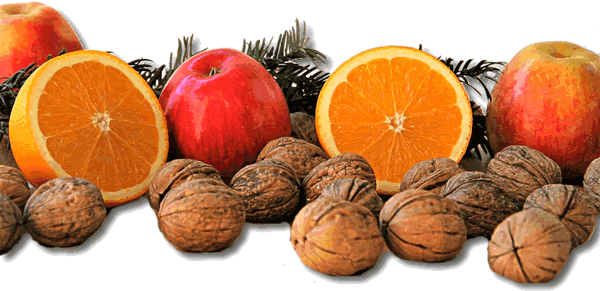 Dat geev Nööt, Appelsinen un Mandarinen. Schokolaad, Marzipan