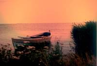 De Schoolmeister sitt an'n Borther Bodden un tövt. Langsam