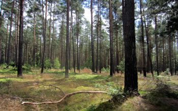 hogen Kiefern stahn väle schlanke Barken, un dat Ünnerholt