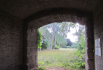 dei Kirch üm dat Dörp. Rechts dörch den'n Tunnel