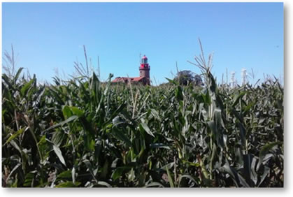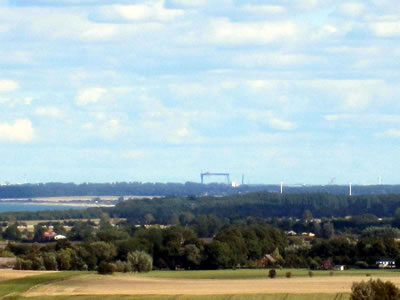 Wenn wi von Gedser abends mit dei Fähr kamen sünd, künnen wi datt Fuer vonn Buk seihn. Ann Dach wier dei grote Kühlturm vonn Rostocker Steinkohlenkraftwerk uns heimatlich Hinwies.